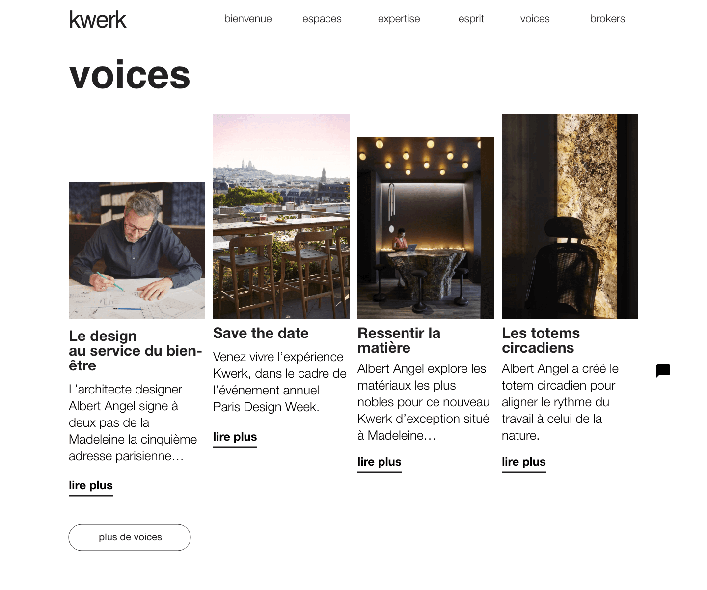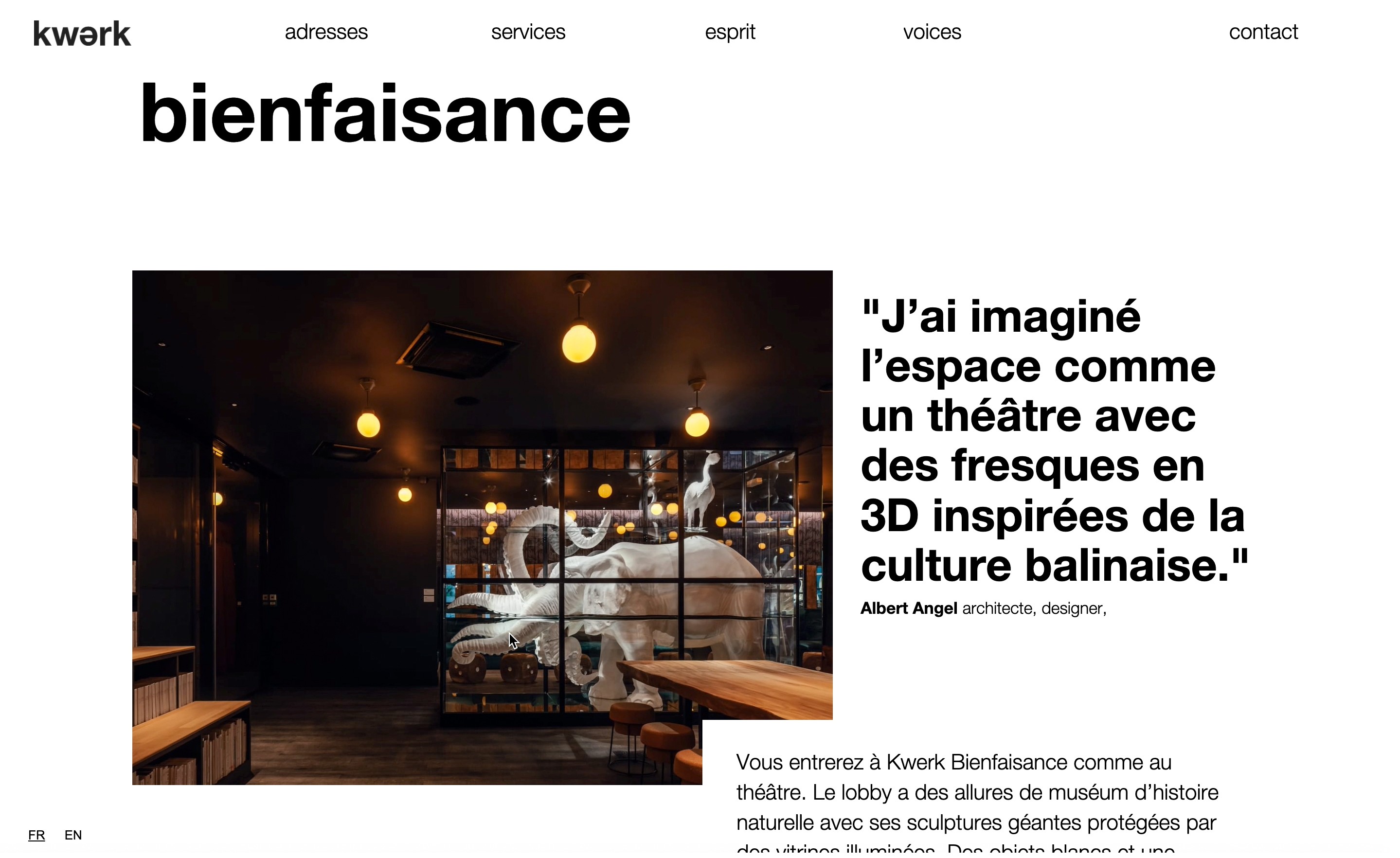 Kwerk.fr is a visually striking and immersive website that reflects the brand’s unique blend of wellness, design, and work culture. The design approach balances bold editorial layouts with a refined UI system, creating a high-end digital identity aligned with Kwerk’s philosophy. Fluid transitions, original navigation, and layered visuals offer an engaging user experience, while the aesthetic—rooted in contemporary luxury—supports both storytelling and conversion across devices.